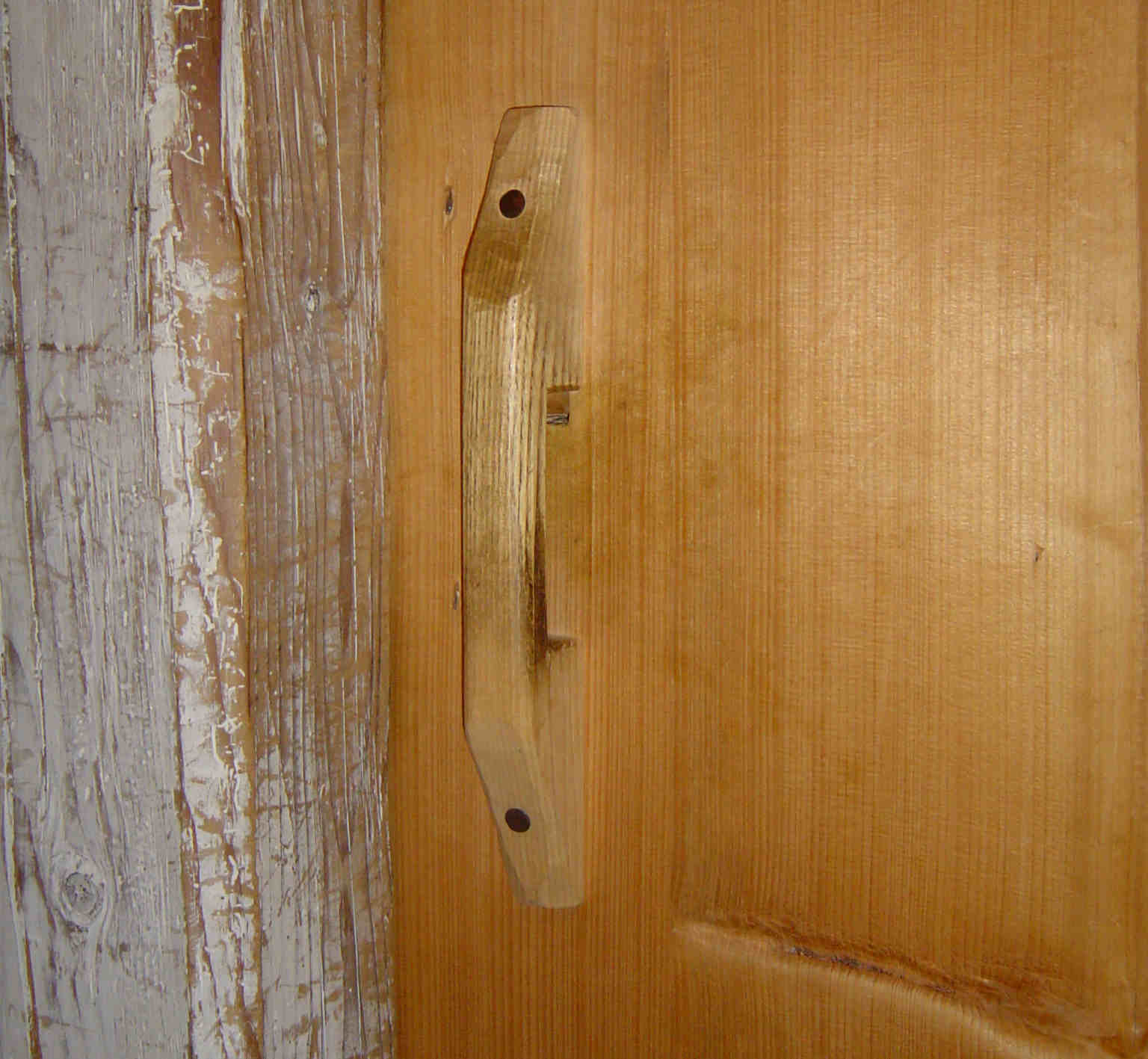Türschloss aus Eschenholz, diese Hebefalle ist in Handarbeit nach historischem Vorbild gefertigt, die Oberfläche ist handgehobelt.