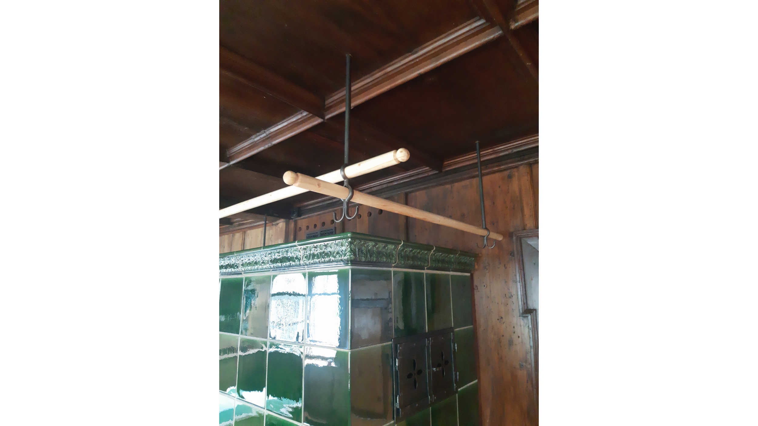 Traditioneller Ofenstangenhalter zur Verwendung an Kachelöfen, in Küchen oder im Bad usw. zum aufhängen von Trockenstangen.
