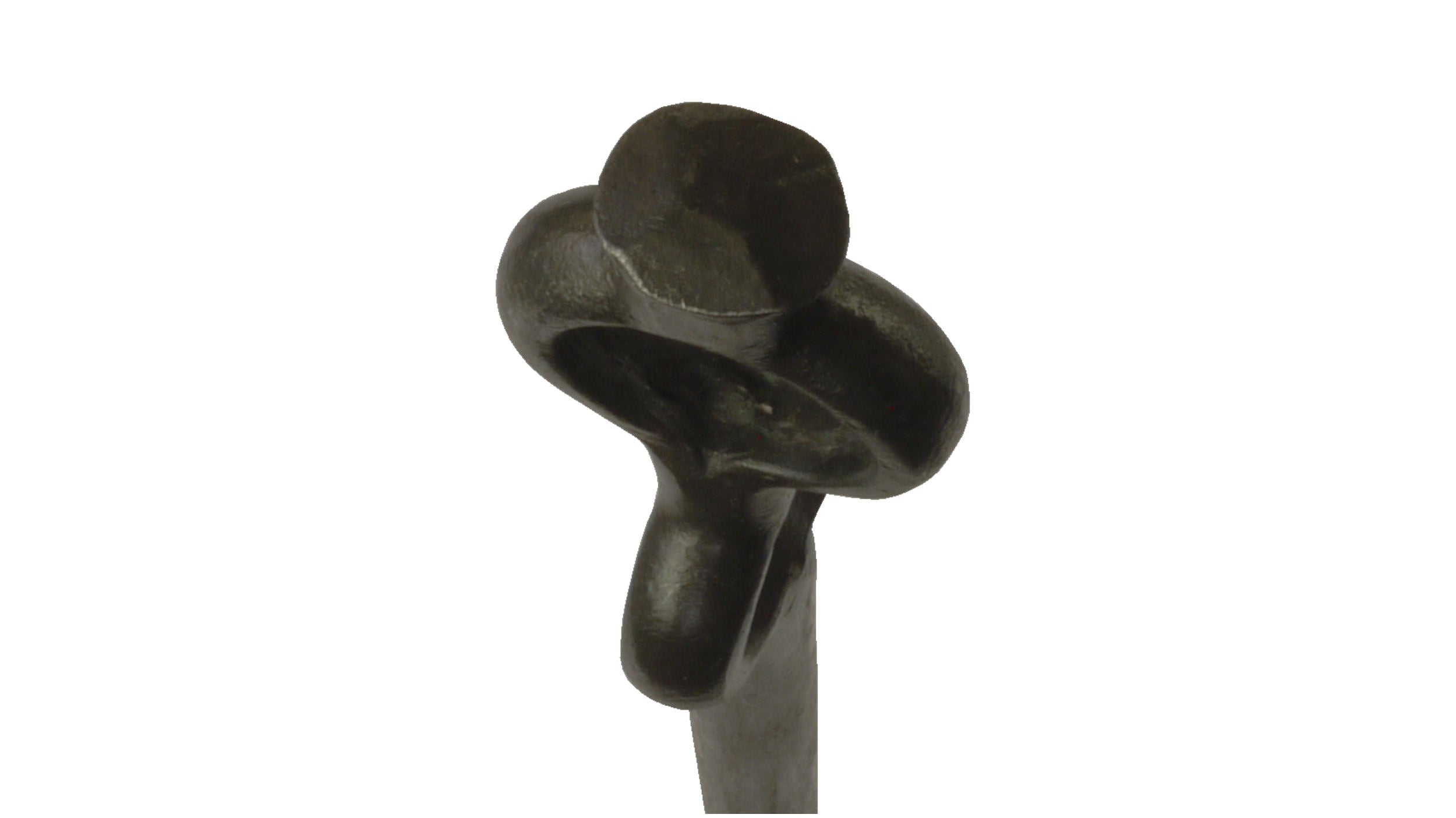 Geschmiedet aus 16 mm Rundmaterial mit einer Lochung, Durchmesser der Lochung ca. 27 mm