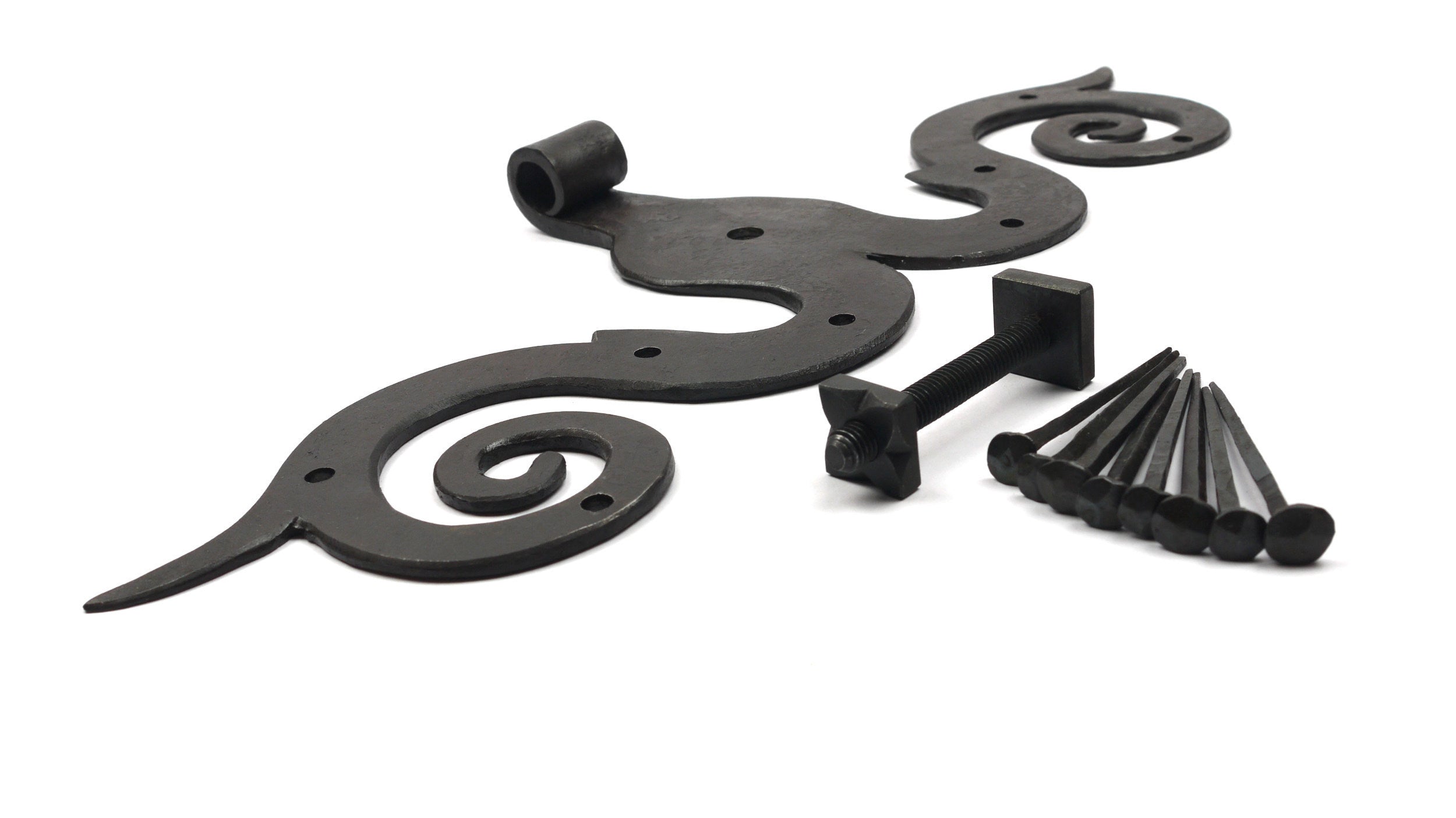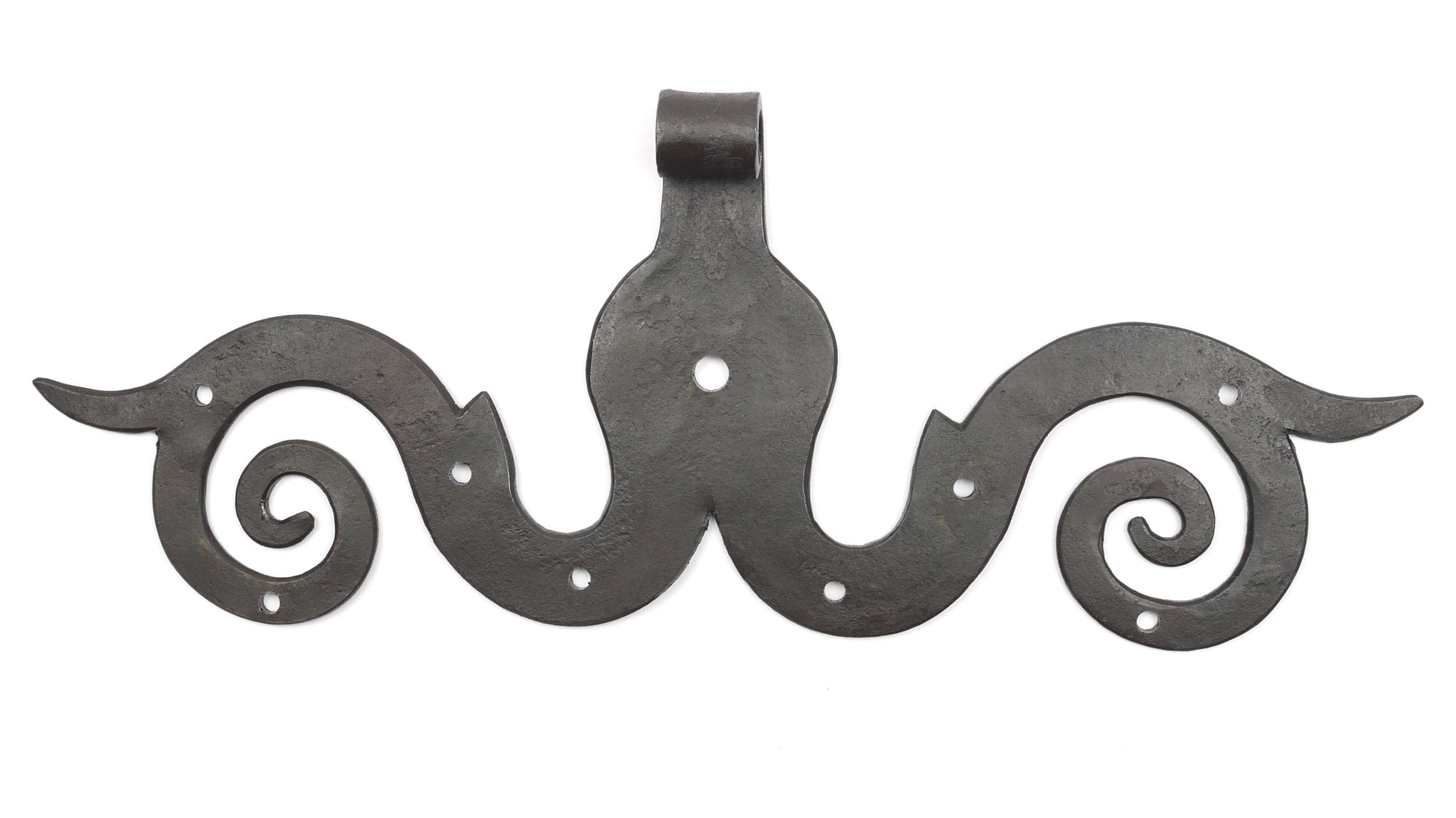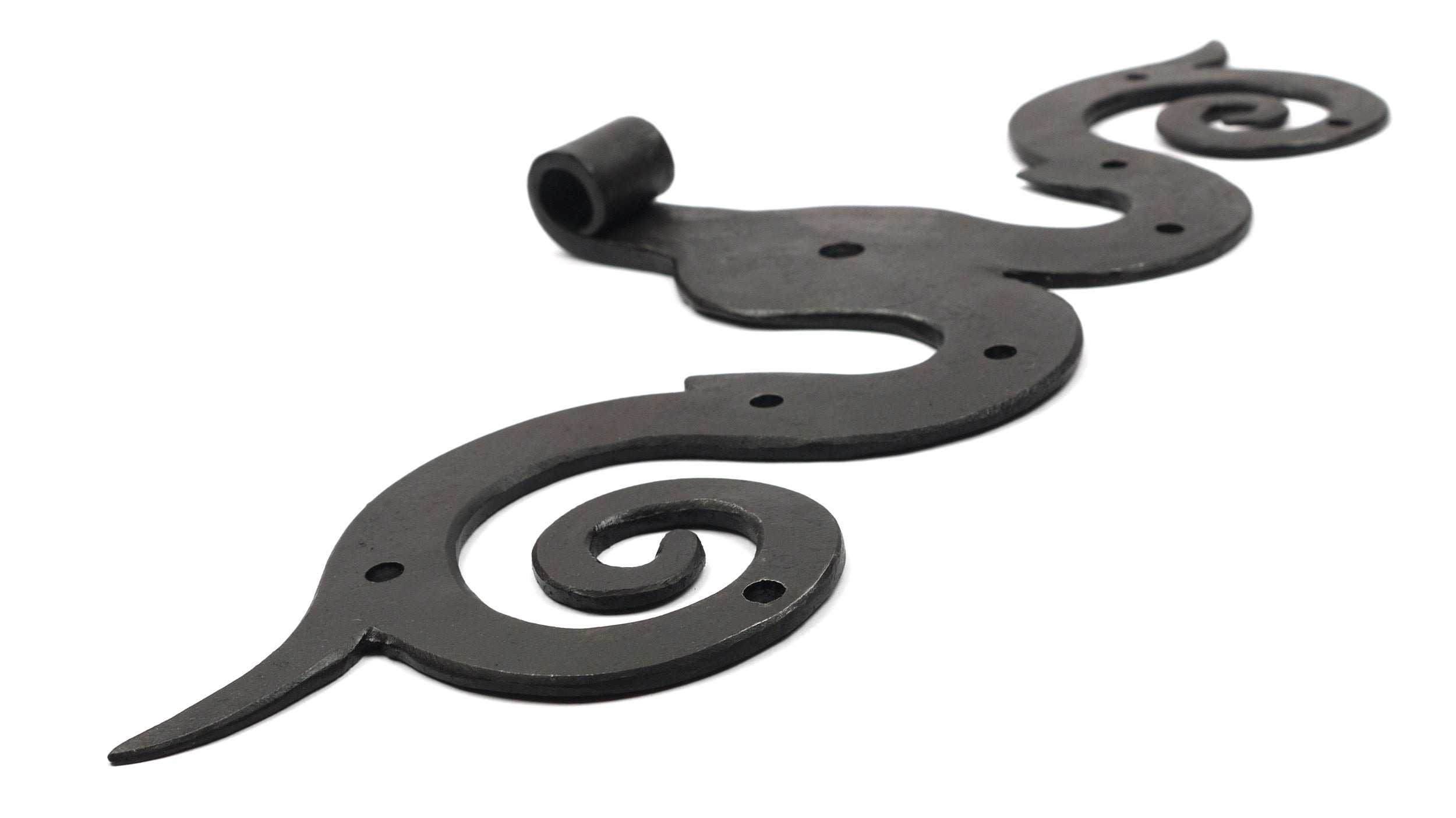 Geschmiedetes Schlangenband, handgeschmiedetes Schlangenband bzw. Spiralband nach historischem Vorbild, für gestemmte oder aufgedoppelte Türen.