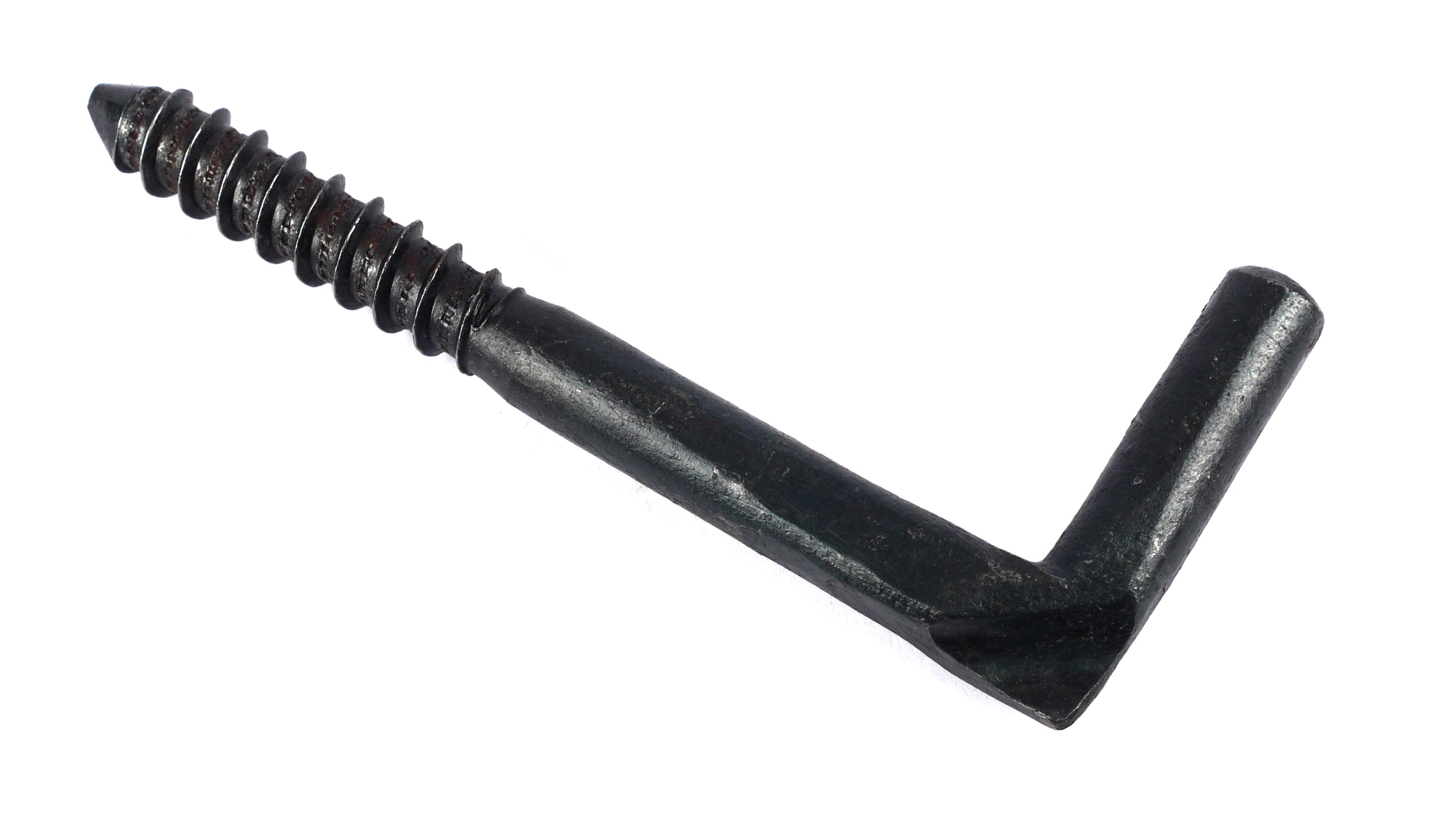 Schraubkloben, geschmiedeter Kloben zum Einschrauben in Balken und Dübel, Verwendung für Fensterläden und sonstige leichte Klappen.