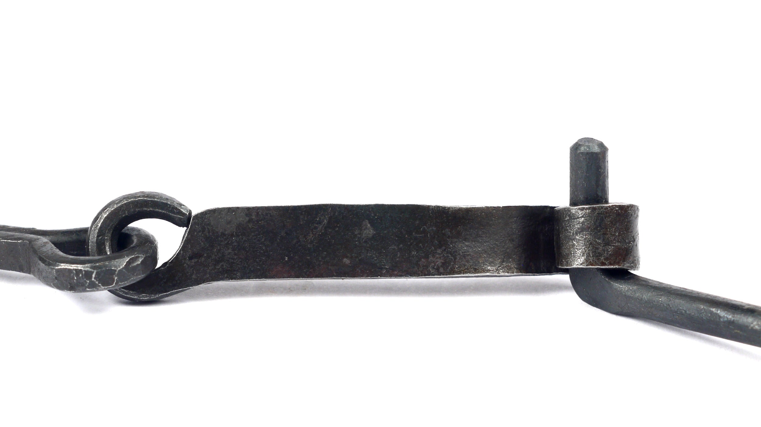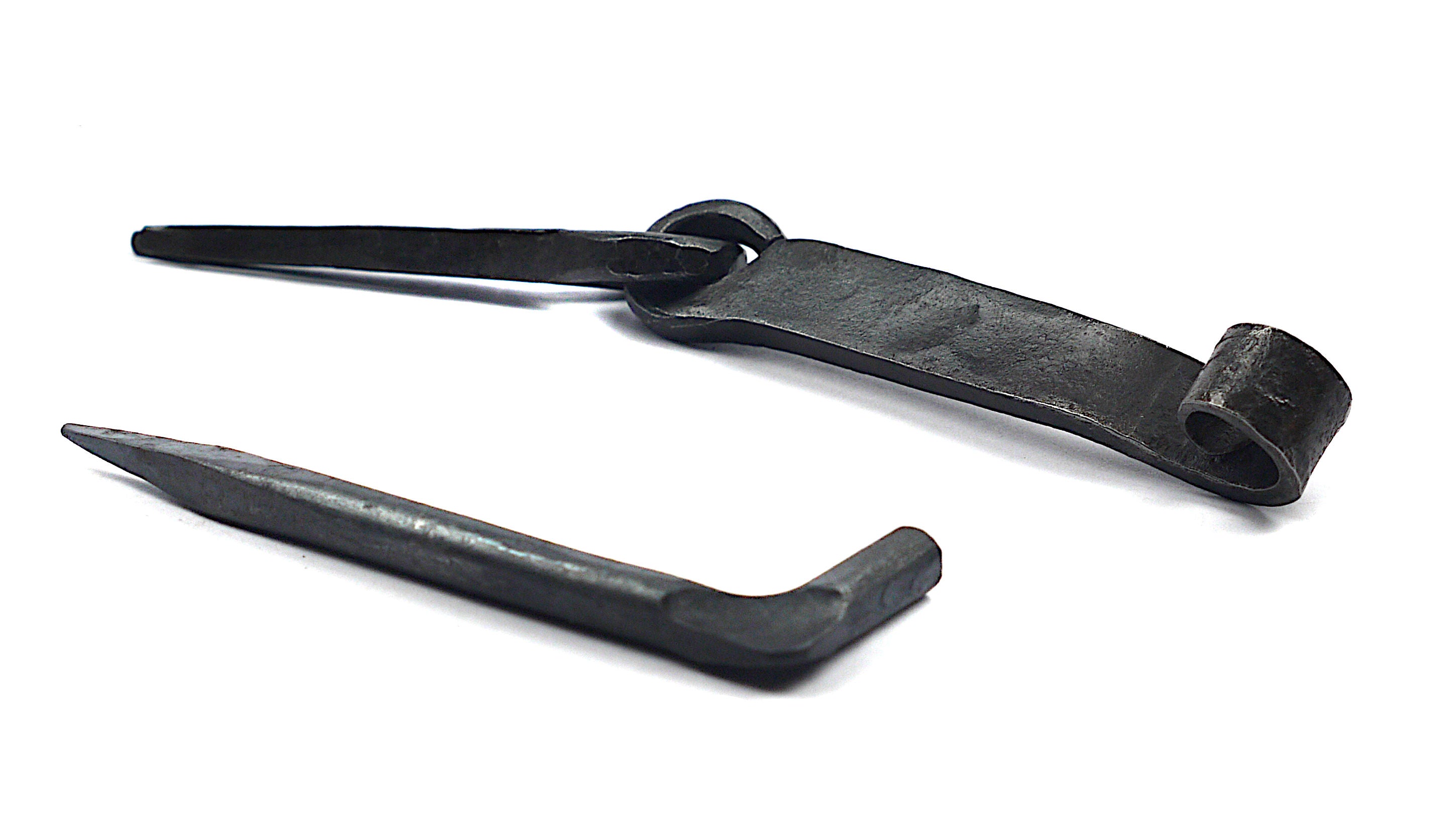 Geschmiedeter Sturmhaken, handgeschmiedeter Haken nach historischem Vorbild mit Krampe und Kloben zum Schließen von Fensterläden oder diverser Klappen und Türen.