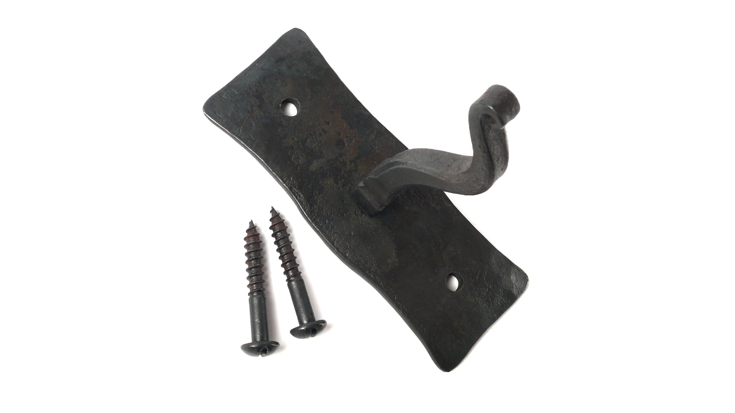 Geschmiedeter Wandhaken, dieser handgeschmiedete Haken wird zum aufhängen von Schürhaken oder ähnlichem Werkzeug verwendet.